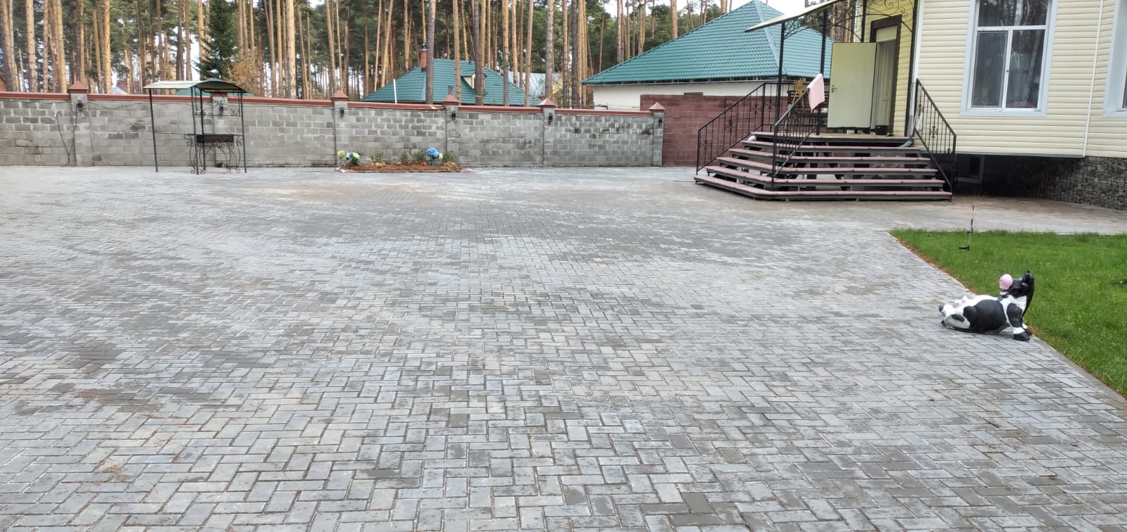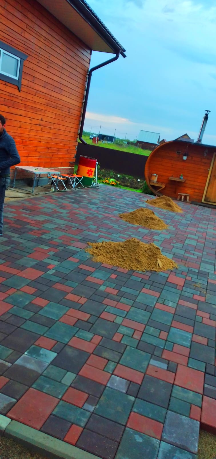 Готовим почвенную смесь, выравниваем рельеф, укладываем рулоны или сеем смесь трав с учётом тени и проходимости двора.